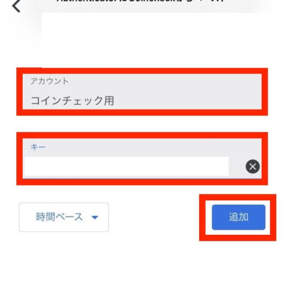2段階認証⑥「アカウント」の名前と「キー」を入力