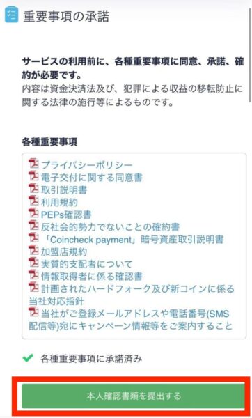 「本人確認書類を提出する」をタップしたら、次のステップに進みます。